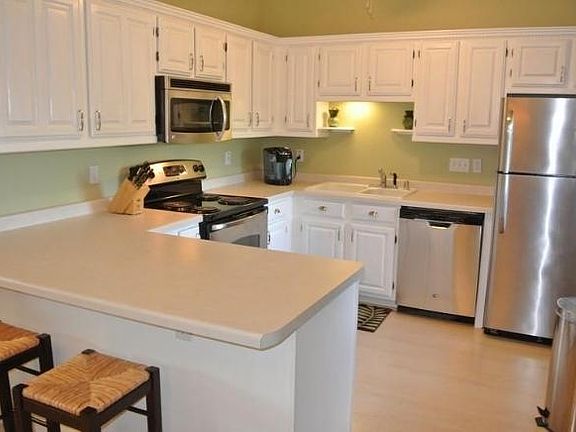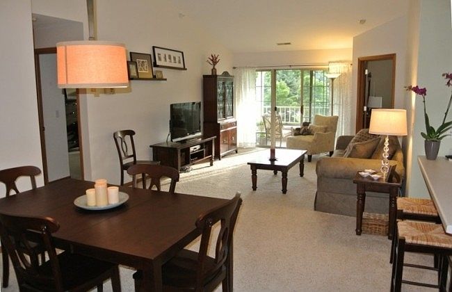 Awesome, pottery-barn fresh upper level ranch condo in a great location. Just minutes to shops, freeway and businesses. Neutral decor is found throughout this open concept property. The white kitchen is offset by new stainless appliances - all included. Open living and dining combo with vaulted ceiling and doors to the west-facing balcony that boasts views of the spacious lawn and trees. Two generous bedrooms and baths plus an in-unit laundry with front load washer and dryer.