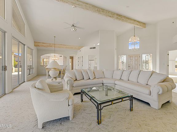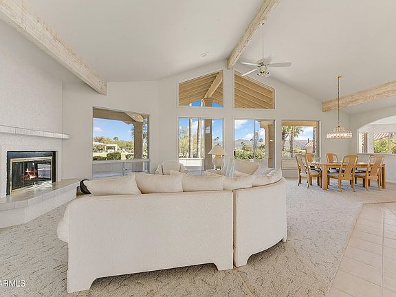 Amazing views from this popular SuCasa floorplan in the 55+Active Adult golf community of Rio Verde. This lot is over 1/2 acre and enjoys views of the White Wing golf course from the front and back. 2 bedrooms plus den and office that could serve as 2 extra bedrooms. 2 dining areas separated by a buffet with views to the mountains and golf course. Great room with wood burning fireplace and vaulted ceiling. Kitchen with center island and cooktop, double oven, walk in pantry, abundant storage. Covered patio with plenty of space for entertaining and panoramic views to the northeast. 2 car plus golf cart garage. Come and make it your own!