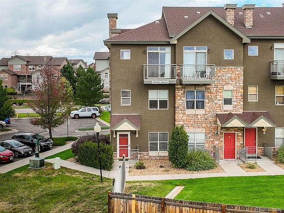 Highly sought after end unit rarely available in the complex situated in the best location! Meticulously maintained by the owner you immediately notice this home is special. There is a sunny finished room on the main level that is unusual for the area if used as finished it adds 146 sq ft otherwise it can be the 2nd car of the tandem garage. There are so many ways to utilize the additional square footage it would be a great craft or hobby room. As you go upstairs you will appreciate the open floor plan with a large kitchen, stainless appliances and breakfast bar, it also walks out to a balcony. The spacious living area looks directly onto the lush green lawn in a private section of the complex. And yes there is a bathroom on the main level! The upper level has 2 generously sized bedrooms with large closets. Both have attached baths, one has a balcony over looking the views!. Located in a convenient location with easy access to E470, Denver International Airport, Denver Tech Center, Cherry Creek State Park, shopping and dining.