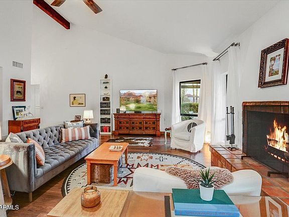 Beautiful vintage modern mission-style home with Four Peaks views on White Wing golf course in gorgeous Rio Verde, named the best place to retire in the U.S. by ''The Manual'' in May 2025. This expansive ranch is perfectly located close to all the amenities, with Honey & Sol, the pool, gym, clubhouse, driving range, courts & post office just steps away. The home has been thoughtfully updated while retaining classic details such as Saltillo tile, a copper-topped kitchen island, and a wood-burning fireplace. A mix of mature & new landscaping has been designed for privacy while you relax on the serene, covered patio that runs the entire length of the home.