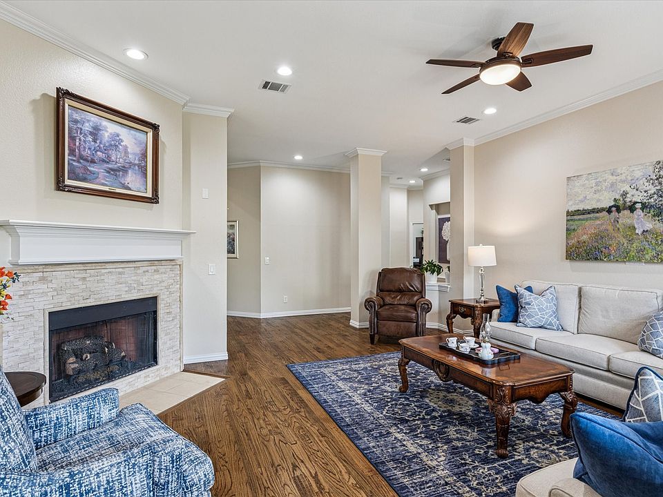 Priced BELOW appraised value!!! Unbelievable opportunity to purchase a home in far north Dallas with gorgeous upgrades. Built in 1993, the residence has been tastefully updated to blend modern comforts with timeless appeal, reflecting a significant transformation by its current owners. As you step inside, the elegant scraped and nailed-down wood floors seamlessly guide you through the main level, creating a cohesive and sophisticated ambiance. The light-filled kitchen, completely reimagined in 2020, boasts sleek finishes and a functional layout that caters to both everyday meals and formal entertaining. This culinary space features white cabinets with a transferable warranty, new appliances, and quartz countertops, all updated in 2020.The primary bathroom, completely reimagined in 2024, stands as a serene oasis. Indulge in its luxurious features: dual sinks, a Jacuzzi jetted tub, quartz countertops, and a Jacuzzi brand porcelain tile shower that rivals the best spa retreats.Adding to the home's exceptional functionality are replacement windows (2021), two water heaters (2020), and an upgraded downstairs AC unit (2022). The thoughtful updates also include fresh paint on walls and trim and new hardware throughout from 2020, maintaining a bright and refreshing feel. Ceiling fans and gas logs in the fireplace further enhance comfort and ambiance. A key feature is the convenient downstairs bedroom and full bath, offering flexibility for use as a guest suite, an in-law suite, or a dedicated home office. Spacious bedrooms and bathrooms upstairs, generously proportioned rooms, and abundant natural light make this a residence of comfort and elegance. Seize the opportunity to live in a distinguished home that provides a timeless design all in a location that puts the best of Dallas at your doorstep.