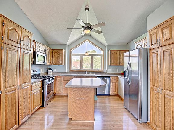 Enjoy a piece of the good life! All of the big projects are done leaving you many peaceful budgeting years ahead & financial room to breathe! Updates include Furnace, AC, Roof, Water Heater, Water Softener, appliances & more! You're going to LOVE the flow of the main level! Large kitchen with oodles of c-top space to prep for any Holiday function. Never fuss about a cluttered kitchen again with the ample storage giving you a place for all of your gadgets. Never lose out on the conversations with your guests with the open floor plan from the kitchen to the dining & living room area. Large primary bedroom with exceptional walk-in-closet. Lower lvl offers a second entertaining space that offers great flex appeal. Both levels walk out to large fenced in backyard with beautiful shade trees & overlooking a water feature! Plenty of room for extra storage in this large 3 car garage that is prepped for a future heater to keep your cars warm in the winter. Home won't last long! Call for a tour!