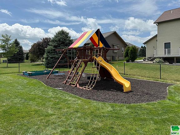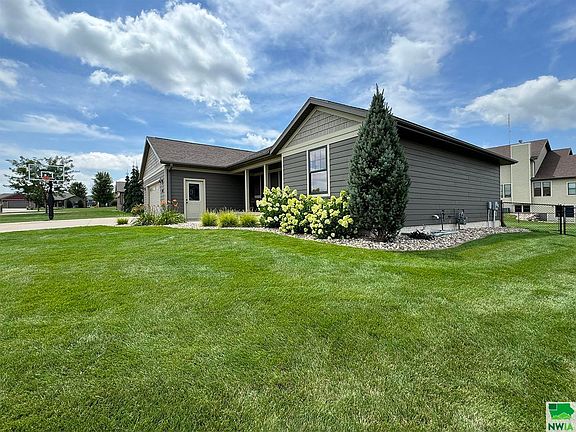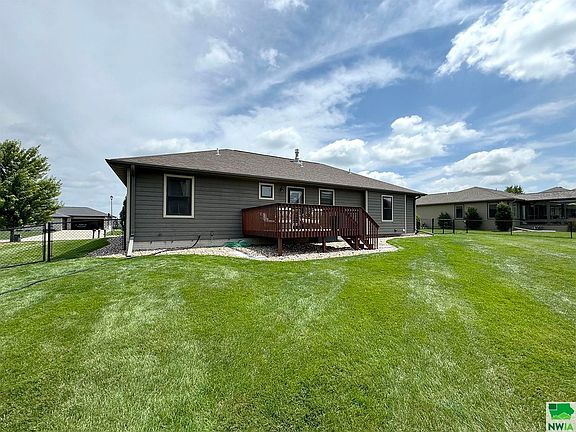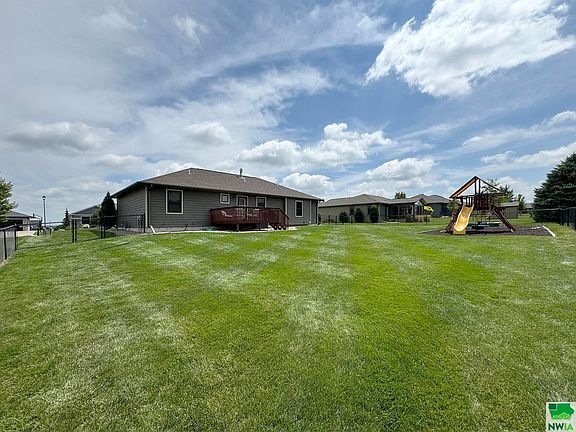 Built in 2012, this well-maintained ranch home offers the ameneties of newer construction with open concept living spaces, 3 stall attached garage, convenient location and spacious yard! Nestled on 5th Ave in a cul-de-sac on the south side of Sioux Center, this house sits on 0.32 acres and features established and well-manicured lawn and landscaping, along with a fenced-in backyard with deck and playset! Inside welcomes you into the spacious and open concept main living area; large living room with gas fireplace, dining, open concept kitchen with island and pantry! The main floor is also home to a primary bedroom with walk-in closet and full bath en-suite, 2 large bedrooms, additional full bath and laundry! The full basement offers so much more! Large family room, kitchenette space, 2 additional bedrooms, full bath, media room/office and ample storage! This property is equipped with a radon mitigation system, irrigation system, updated water heater (2023), and garage heat! All appliances included and move in ready!