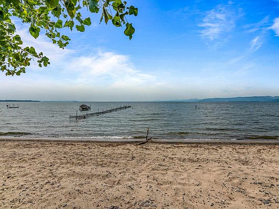 Imagine the allure of waterfront living, where sunsets and sandy shores paint the backdrop of your seasonal haven. Constructed in 2012 on a concrete slab 106.5 feet above ground level to prevent flooding from fluctuating lake levels provide peace of mind and investment security. The average annual water level is 95.5 ft(per Lake Champlain Land Trust). Enjoy the single-level, open-concept layout featuring vaulted ceilings and abundant windows. A gas fireplace insert ensures warmth, while the kitchen features an extended bar perfect for admiring the panoramic views of Lake Champlain. Additional storage can be found in the loft space and a powered shed in the backyard with washing machine for beach towels. The property boasts a spacious driveway for ample parking and an open yard ideal for outdoor games. With southwest exposure, you are treated to breathtaking vistas of Lake Champlain and the Green and Adirondack Mountains. Summer nights invite you to enjoy campfires on the beach and stargazing with friends. For biking and recreation enthusiasts, the nearby Island Line Trail provides convenient access to the causeway, leading directly into Burlington or the Champlain Islands. This camp is situated on leased land, with the season running from April 1st to October 31st. Buyers will receive a new lease at closing, w 20 yr. renewal. Most furnishings included! UPDATE: SELLERS WILL PAY IN FULL THE 2025 LEASE FEE & HOA DUES with an acceptable offer($10,652*)!!!