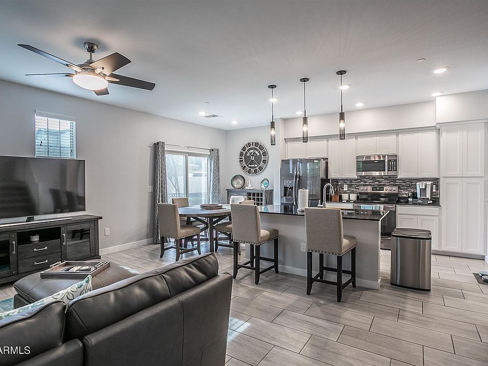 TONS OF UPGRADES! Located in the highly sought after GATED neighborhood of VAL VISTA CLASSIC. 2 CAR ATTACHED GARAGE & LARGE PATIO along private walking path. Located directly across from the park and community pool. END UNIT! 3 bedrooms, 2.5 baths with about 1500 sqft of living space. LARGE MODERN TILE with Upgraded carpet in the bedrooms. OPEN KITCHEN with white cabinets, island with QUARTZ COUNTERTOPS, BLACK STAINLESS STEEL APPLIANCES. Custom Paint. Only 2 yrs old! This is not your typical AZ community! Tons of lighted and walking paths under shaded mature trees with 4 bridged lakes, 3 community pools, spas, basketball court, playground and open greenbelts! Walking distance to San Tan Mall and lots of places to eat and shop! Close to the 202 Freeway,