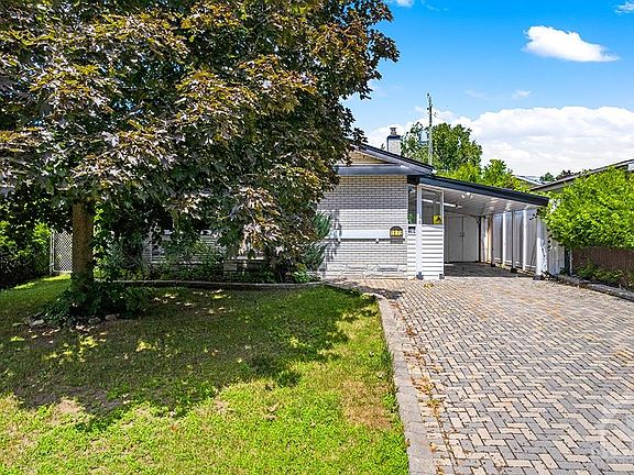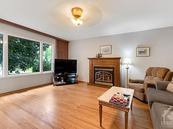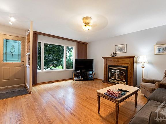 Family home or, rental investment. For your family, 3bed, 2bath brick bungalow with private fenced and hedged backyard, just steps to a park on quiet street. For rental income, you have a great location only 8 mins to Carleton University, 7 mins Ottawa General Hospital or CHEO and 15 mins Heart Institute. Parking for 4 cars on interlock driveway with carport. Front foyer with closet Livingroom gas fireplace, hardwood floors and big window overlooking shade tree in frontyard. Bright eat-in kitchen. Three bedrooms; two have hardwood floors. The third bedroom has laminate floor and door to backyard; this bedroom currently used as diningroom (or could be office). Two full bathrooms; one has laundry station with washer & dryer. Finished lower level familyroom has second gas fireplace. Utility room with washer & dryer hookup. Zoning permits a second dwelling unit; creating potential for lower level rental apartment with separate entry via side door. Near shopping, bus routes and many parks.