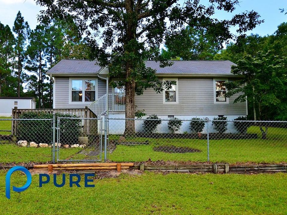 3 bedroom, 2 bathrooms home on an acre of land in a country setting in Lugoff. Half of the property is fully fenced. Front patio and front and back decks. Family room has vaulted ceilings and ceiling fan. Kitchen has newer counters and floors, black side-by-side refrigerator, dishwasher, and smooth top stove. Laundry closet off kitchen. Master has chair rail moldings, ceiling fan, and master bath has tile floors. There is also a storage shed in backyard with power and electrical outlets. Well water and septic system. Has Rently box, so super easy to view. All PURE Property Management residents are enrolled in the Resident Benefits Package (RBP) which includes renters insurance, HVAC air filter delivery (for applicable properties), credit building to help boost your credit score with timely rent payments, $1M Identity Protection, move-in concierge service making utility connection and home service setup a breeze during your move-in, our best-in-class resident rewards program, and much more! More details upon application. This property comes equipped with Gig-Speed Internet at $65.00/month!