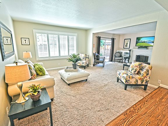 Dana Estates, beautiful single story 3 bedroom 2 bath home with approximately 1438 square feet of living space and a 2 car garage! The updated kitchen features granite counter-tops, gas range cook-top, microwave and stainless steel dishwasher and refrigerator. Versatility is yours with this open floorplan. Nice size family room connects to a large living room or whatever your vision/needs create. Family room with a cozy gas fireplace is flanked by built-in bookcases and newly installed carpet and is adjacent to the Living room with custom shutters and newly installed carpet. Both bathrooms are upgraded and very spacious. Bedrooms are all a nice size with hardwood floors and ample closet space. Find your backyard access just off the family room or the master suite. You have room for so many activities from gardening to an area for soccer or Frisbee. How about a hot tub? Well there is room for that too. Time to fire up the BBQ, while enjoying family time and sipping your favorite bev
