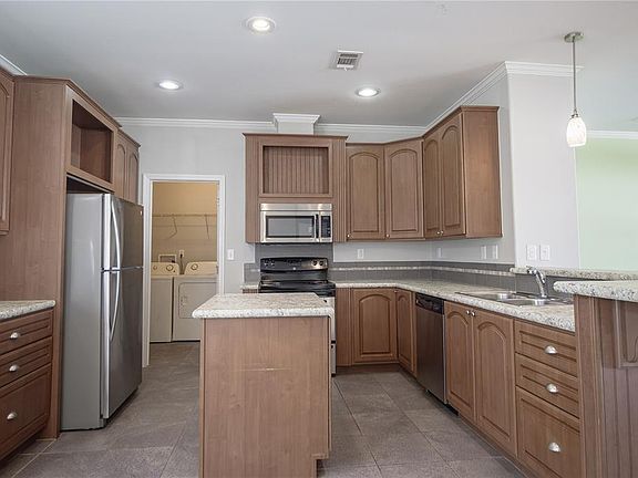 Beautiful 3 bedroom, 2 bathroom home for sale in Palm Bay. Don't miss the opportunity to own this well maintained, 10 year old home. Split layout with primary bedroom suite including new carpet, walk in closet, double vanity bathroom with shower. Two additional nice size bedrooms with ceiling fans and new carpet. The family bathroom has a tub/shower combination. Living room features a ceiling fan and crown molding. Nice size kitchen with lots of cabinets, stainless appliances, center island, breakfast bar adjacent to the dining room. Dining room walks out through the sliding glass doors to the rear patio. Two car garage and interior laundry that includes a washer and dryer. Ready to move in!