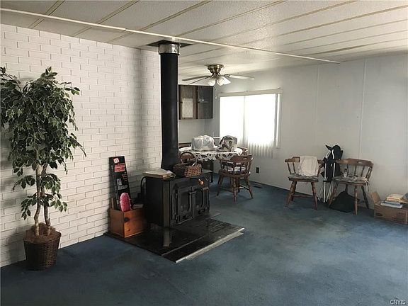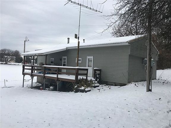 Situated on 3/4 acre just outside the village this quaint doublewide is the perfect starter or retirement home. Spacious living room, dinette area , ample kitchen that opens to covered deck overlooking very private backyard. Large master bedroom was converted ( 3rd bedroom wall was removed). Updates include vinyl siding, replacement windows, metal roof, new septic tank. --- Public water--Storage shed