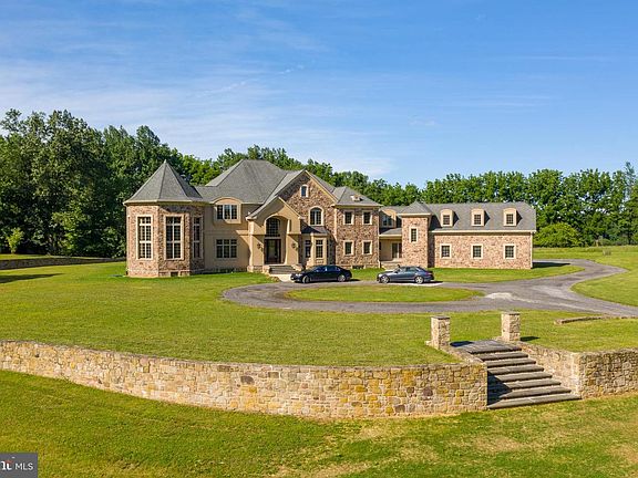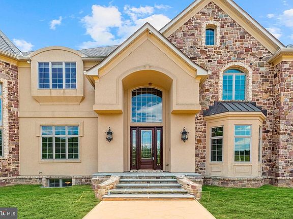 Inspired by French Normandy-styled architecture, this romanticized grand scaled estate home employs design elements including the quintessential iconic round turret with a conical roof, mixed stone and stucco exteriors consistent with a French rural estate home. Complete with a private tree lined drive, four-board fence, stone garden walls and pond, this magnificent setting offers over 80 beautiful acres and invites magnificent living and entertaining.Inside, each space is thoughtfully designed with rich finishes, elaborate decorative moldings and strong ceiling embellishments enhanced with cove and other feature lighting. Welcome guests into elegance beginning with a two story extended foyer and winding stair crowned with deep French ornamental divided parterre ceiling trim and center dome that serve to set the stage for the fine trim, ornament and ceiling details that articulate nearly every space. The classical French turret with a steeply beamed, octagonal wood ceiling is a perfect music room to augment entertaining in the adjacent banquet and gathering spaces. The dramatic two storied great room is open to a library gallery above with deep coffers and rich paneling of solid cherry wood. Other noteworthy highlights include a handsome study on the main as well as a large business office designed ahead of the work-at-home curve. This generous office space if outfitted with multiple built-ins set up perfectly for desking separated for social distancing with a secondary entry and second back stair distinguish home from office spaces.Work hard and play hard after in the fully finished, luxury lower level offering multiple entertaining venues for large and small gatherings. A seventeen-foot bar is sided by another octagonal space that houses a wine cellar detailed with a feature stone floor medallion at center, surrounded by racking and tasting station. Unusually high ceilings in this extraordinary space are embellished with lighted stained glass panels inside of solid cherry coffers in the bar area, while the game area features a linear barrel vault that is suggestive of a linear game / pool table beneath it. There is simply no end to the richness, detail, and lux amenities that bring life to this storybook French-styled residence surrounded by over eighty acres of rural land and fields. Come home to perfected luxury living at 1873 Old Taneytown Road in lovely Westminster, Maryland.