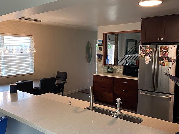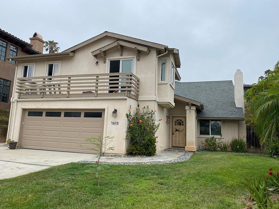 Recently remodeled home in Cardiff-by-the-Sea. A mile to the beach; ocean views! Large fenced-in backyard; deck off of upstairs Master bedroom. Downstairs has 1 large bedroom which could be used as a Master, and an office that can be used as a bedroom. Two bedrooms upstairs, and a finished 10x10 room (no closet) that can be used as a third upstairs bedroom. There is a an apartment over the garage that is rented as a separate unit from the house (the apt is not included in the house rental). Great schools: Cardiff Elementary, Ada Harris, Oak Crest, SDA, LCC, Canyon Crest, or Torrey Pines for high school. Renter responsible for all utilities except water. Renter is not responsible for gardener (comes every other week).