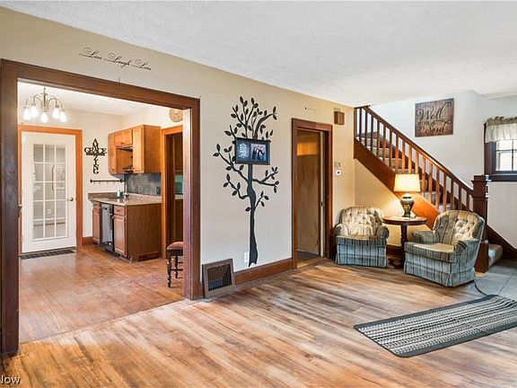 Charm and character starts at the full front porch for this 4 bedroom 2 1/2 bathroom colonial two story on nearly 1 acre. Hardwood floors in the living room and dining rooms. Dining room features a coffee bar with sink. The spacious family room accesses the deck, patio, and back yard. Two staircases, one from the living room, and one from the family room, lead to the second floor, where the four bedrooms and the two full bathrooms can be found. 3 car detached garage! Roof less than 6 years old. No FHA or VA