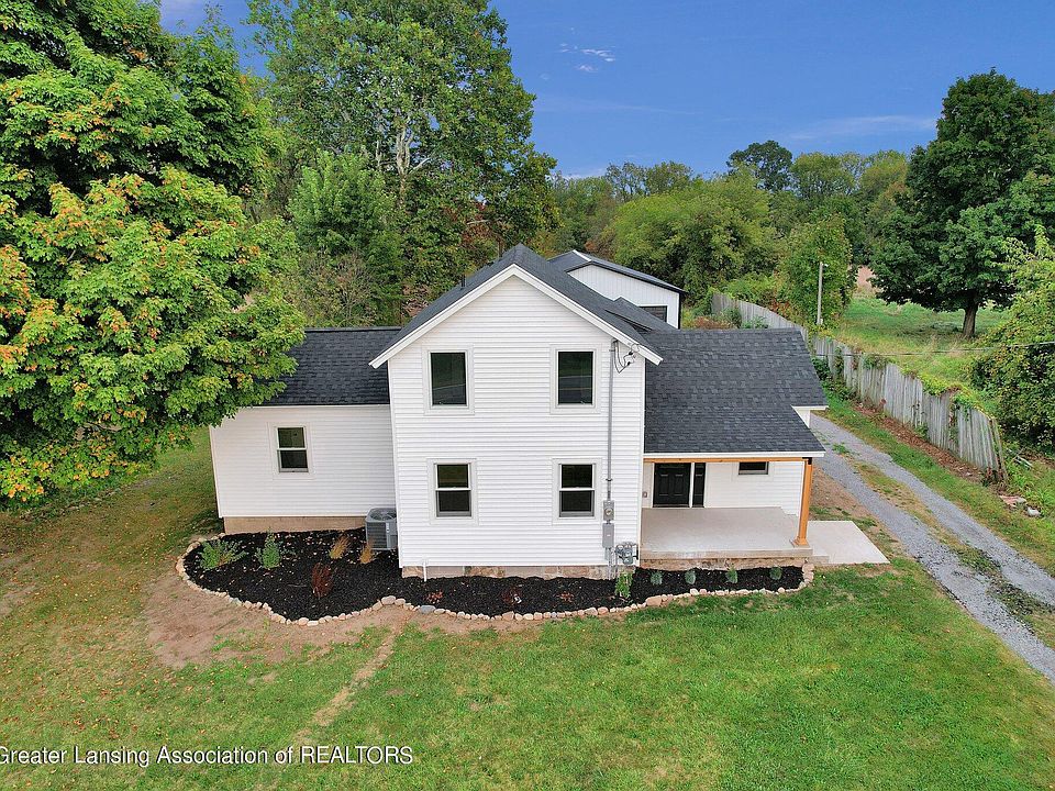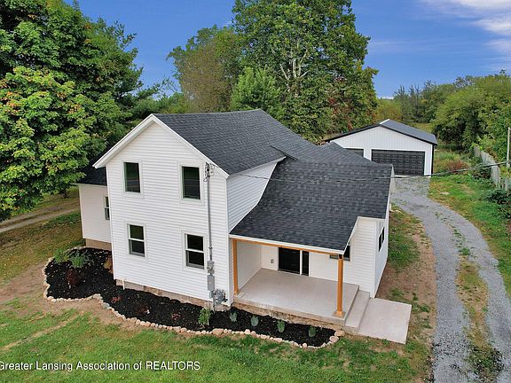 Welcome to a beautiful 3 acre property in Mason! This is a stunningly remodeled, 3 bedroom, 2.5 bathroom home! The first things you will notice upon entry are the vault ceiling and then the gorgeous 3/4 inch hardwood floors that flow through the dining and living rooms and into the kitchen. The kitchen also features quartz counters, tile backsplash, a farmhouse sink, crown molding, and all Whirlpool appliances! The primary suite is found on the main level with carpet, a walk in closet and en suite bathroom. The bathroom also has quartz counters to go with the full tile surround of the tub and shower! On the upper level are two more carpeted bedrooms and the second full bath. Outside, you will find an awesome yard and a 32x32 barn with two overhead doors. This is the place to be in Mason!