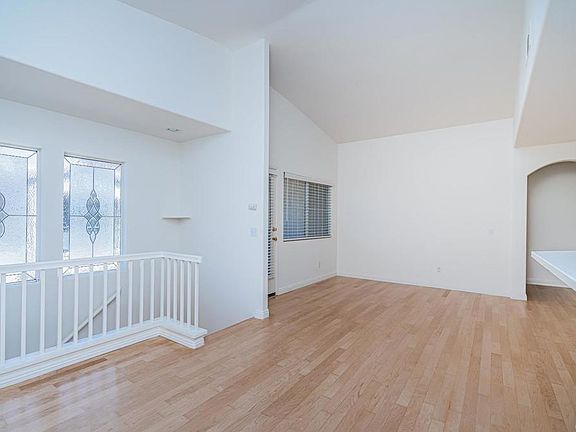 Beautiful 2 bedroom, 2 bath townhome with attached 2 car garage directly across the street from award winning Corky McMillin Elementary! The open concept kitchen opens up to the living and dining room with vaulted ceilings and plenty of natural light. The balcony off of the living room is great for morning coffee and a good book and creates a spacious and comfortable atmosphere. Upgrades include beautiful, newly refinished hardwood floors throughout, fresh paint, including all interior doors, frames and staircase railings and new blinds. The community is meticulously cared for and includes a pool, spa, tons of acres of walking trails, parks, tennis and basketball courts. Restaurants and stores are all incredibly convenient within this master planned community!