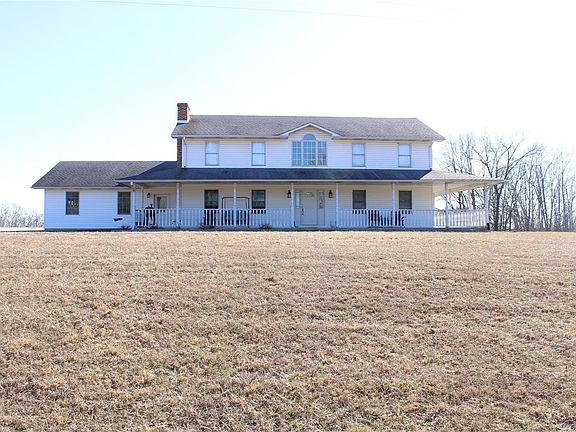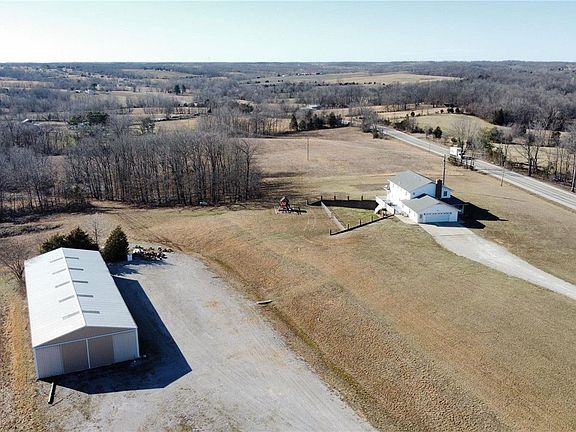 A wonderfully rare property that includes a 5bed/4.5bath 3600sqft home, dawning a wrap-around porch and stunning sunsets from its perch atop a hill on 21.55 acres. This one-of-a-kind property also includes a 5,000sqft, four bay shop and a 2,000+sqft detached garage with electric, a back room, and unfinished bathroom.(The large shop has generated revenue as an equipment storage rental and the small shop has previously been used as a business.) When walking into the home through the front, you'll be met with a beautiful foyer and stairs leading up to a four bed and two full bath upper-level. If entering through the heated garage, you'll walk into a gorgeous dining room/kitchen combo with a large island and walkout to a large deck, all great for entertaining. Main level includes a large living room with a fireplace, primary en suite, office and a bathroom. In the partially finished basement is a wood burning fireplace, hot tub, bathroom, game room and storage area.