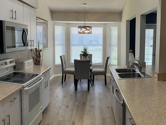 Very popular Expnded Oakmont Model Expanded to Include Florida Room and an Outside Covered All New Screened Lanai making it Florida Living at its Best. Double Door Entry with Double Storm Doors. Welcoming Foyer and Living/Dining Rooms (Great Room); Galley Kitchen with Recessed Lighting/Closest Pantry/Abundant Cabinets & Counter Space; Breakfast Nook with Bay window opening to Florida Room; Spacious Master Suite with TWO Walk-in Closets; Master Bath with Walk-in Shower/Double Sinks/Linen Closet; Guest Suite with Room-size Walk-in Closet and Separate Full Bath; Laundry with Added Counter & Cabinets; Attached Garage with Cabinets/Work Bench & Side Entry Door. New Roof 2018; New Heat Pump; New Flooring in Kitchen & Baths; High Rise Toilets; New Dishwasher & Microwave. Located in Premier Adult 55+ Golf Course Community with Olympic Heated Pool & Spa/ Newly Renovated Restaurant/Lounge/Activity Room and Performing Arts Center plus Tennis/Pickle Ball & Bocce Ball Courts. Convenient to Beaches/Shopping/Dining/Entertainment and not far to Tampa or Clearwater. Retirement Living at its very Best! Some Furniture Available Separately.