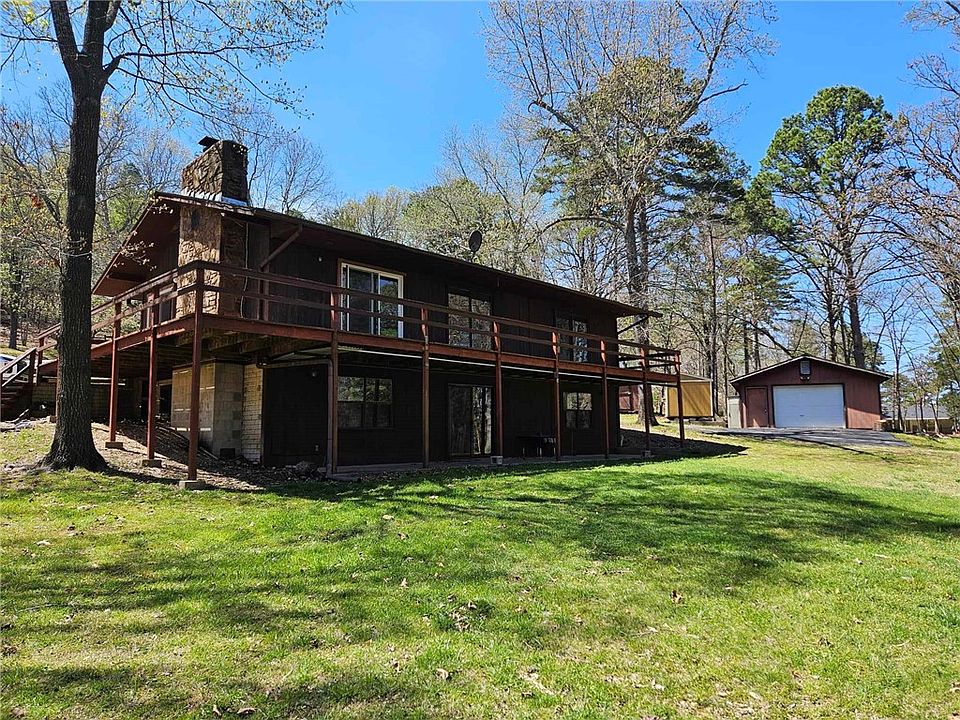 Nice 2100 sq ft home located on 1.5 very slightly sloped acres with winter Beaver Lake view. 3 bedrooms 2 full baths and 2 living areas both with wood fireplaces. Home has a HVAC system fall of 2023, newer water heater and dishwasher. Wonderful upper level deck & lower level patio across entire back of home with a view of your beautiful back yard and peeks of Beaver Lake. Screened in carport to enjoy they beautiful fall evenings plus a 20X40 shop and 2 additional sheds for storage. This would make a great family home. This great home has no fence so the wildlife can visit. Property is located just around the corner from Coppermine Lodge.