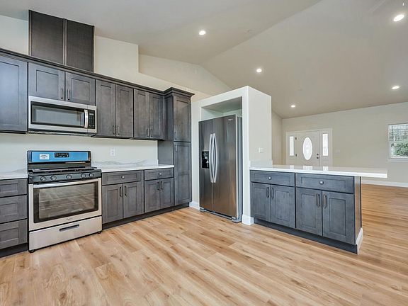 Stunning new construction home sits in an ideal spot overlooking the second hole on the Hidden Valley golf course and is overflowing with upgrades, including owned solar! Soaring ceilings and beautiful vinyl plank flooring throughout the great room. The warm tones from the flooring pair perfectly with the bronze touches that run through the veining featured on the gorgeous quartz counters. The kitchen is a chef's dream with plenty of counter & cabinet space, stainless steel appliances, a large breakfast bar, and custom dark grey charcoal cabinets. The ample primary suite offers an oversized walk-in closet, and spacious bathroom with dual sinks, modern fixtures, lovely cabinetry & quartz counters, and a large stall shower. Enjoying a privacy floor plan, the two additional bedrooms & second full bathroom are on the opposite side of the home from the primary suite and both feature plush carpeting, high ceilings, and well thought-out placement of electrical outlets. The front bedroom also has a walk-in closet. With both a large covered front porch and an oversized, fully covered rear deck with composite decking, there is plenty of space for both indoor & outdoor entertaining. A large indoor laundry room is extra convenient. Convenient location near clubhouse & restaurant.