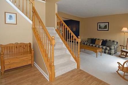 Welcome home to this beautiful 4 bedroom home with 2 story entry. Spacious kitchen with center island and tons of cabinet storage, overlooks cozy family room with gas log fireplace! Large fully fenced backyard with wood deck! Bump out in garage offers additional storage space! Finished basement is plumbed for full bath and offers flexible living space! Neighborhood pool and park! Don't miss this amazing home!