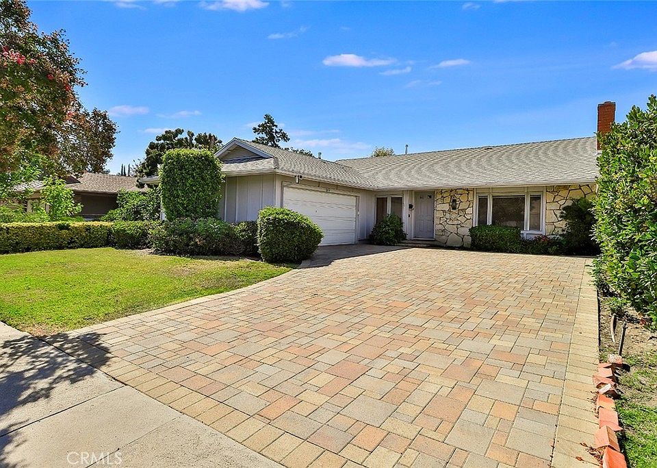 Charming single-story residence nestled in the heart of Northridge in the “Pepper Tree” neighborhood is ready for you to call your own. Cul-de-sac location with upgraded paver driveway, 2 car garage, 4 Bedrooms, 2 Bathrooms, 1,634 Sq.Ft., on a 7,507 Sq.Ft. Lot. Enter into the foyer with wood floors and step down light and bright living room with high ceilings with painted beams, and custom stone fire place. Living room is open to the formal dining room with custom beveled mirrors. Kitchen with granite countertops and backsplash, upgraded cabinets with pull out drawers, upgraded appliances including Frigidaire Electrolux electric stove and oven, built-in microwave, Whirlpool dishwasher, stainless steel refrigerator, and stainless steel sink. Family room is open to the kitchen and has double doors to the backyard. Primary bedroom with doors to the backyard, mirror closets, and Ensuite bathroom featuring granite countertops, spa tub and separate walk-in shower with 5 shower heads and towel heater. Three secondary bedrooms and an upgraded hallway bathroom. Other features include: smooth ceilings, central air conditioning, recessed lighting, brick paver driveway, washer and dryer included. Backyard with covered patio that runs the length of the house, and yard with fruit trees.
