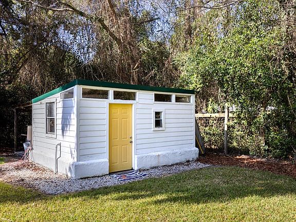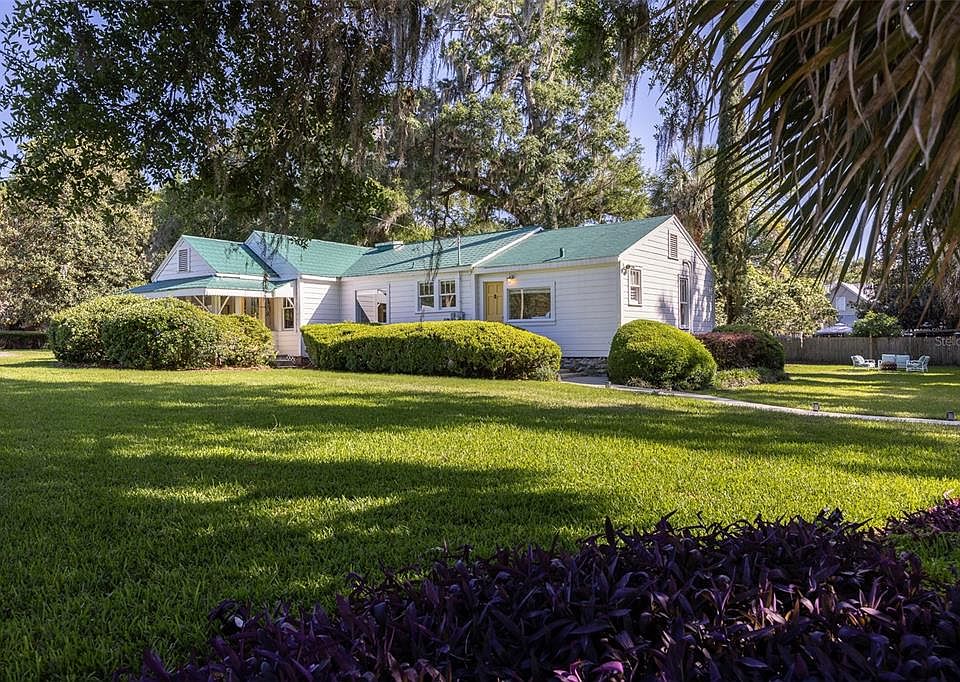 Welcome to your dream retreat in the heart of Historic High Springs! This beautifully renovated 3-bedroom, 2-bath Craftsman bungalow sits on a lushly landscaped ½-acre corner lot on a peaceful side street, just a short walk to the Great Outdoors Restaurant, downtown shops, cafes, bars, and live music and is located just minutes from Blue Springs, Poe Springs, and only a 12-minute drive to Ginnie Springs, thus offering quick access to some of Florida’s most beautiful natural springs. The University of Florida and downtown Gainesville are only 22 minutes away, making this an excellent location for both personal use and investment. Offering the perfect mix of vintage charm and modern upgrades, this home features original wood floors and windows, a fully updated kitchen with Corian countertops, soft-close cabinetry, new appliances (including a dishwasher and dryer), and fully updated plumbing and electrical systems. The spacious layout includes a king-size primary bedroom and two guest bedrooms with queen beds, two full bathrooms and a bright dining area adjacent to the kitchen. Smart home features include keyless entry, a smart thermostat, security cameras, and a smart TV (included). French doors lead to a stunning covered front porch with vaulted wood ceilings, a hammock swing chair, and a relaxing view of the beautifully landscaped yard. Outdoors, enjoy your own private oasis with a fire pit, grill area, fairy lights, a two-person hammock, and mature trees. The entire yard is fully irrigated and fed by a private spring-fed well, providing fresh drinking water and eliminating water bills. The home is equipped with a UV antiviral air conditioning system for added comfort. Also included is a detached outbuilding with metal roof, ideal for use as a studio, home gym, or office. This home has operated successfully as a short-term rental and offers outstanding potential as a vacation home, full-time residence, or turnkey rental property. Comfort bedding, hotel-grade linens, premium bath products, and select antique furnishings can be included, making this a truly move-in-ready opportunity. This one-of-a-kind home won’t last—schedule your private showing today!