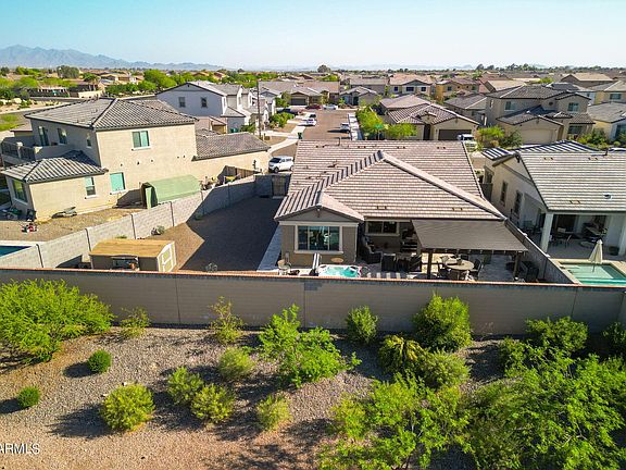 Welcome to your own private oasis nestled on an oversize lot & tucked into a curve on the road, w/privacy & space. Voted Best of Litchfield Park home Tour. Upgrades everywhere! The gourmet kitchen boasts quartz counters, staggered cabinetry, a large island w/pendant lights & breakfast bar. The kitchen opens to the living room for easy entertaining. Enjoy the versatility of 3 bedrooms plus a den, perfect for work or play. The spacious master suite offers the perfect retreat. The master bath has a garden tub & a glass walled shower. Tile in all main living areas. High ceilings & lots of natural light. The 3 car tandem garage provides ample room for all your vehicles & toys. No neighbors behind you out back.-it's your own private paradise, complete w/travertine pavers, a Spa & BBQ island