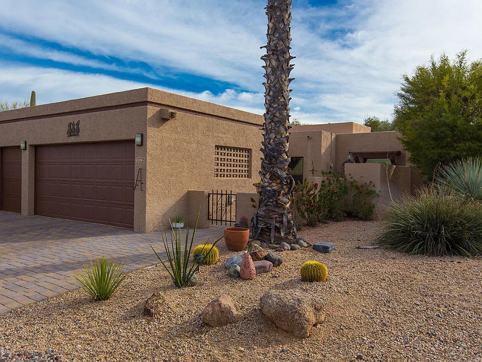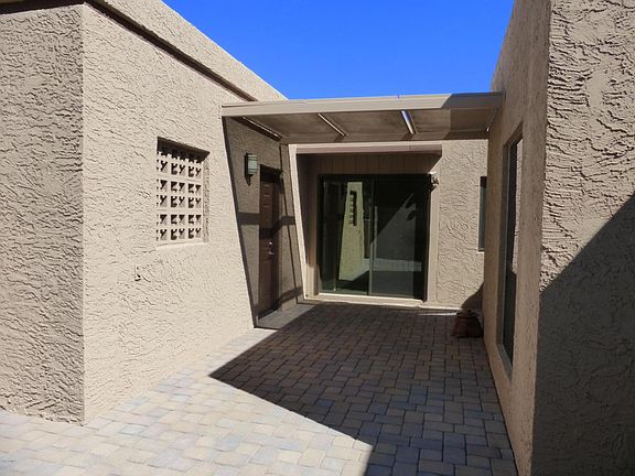 Completely remodeled Town Home with only one HOA fee. Nice neutral floor tile throughout the entire unit. Kitchen has granite counters, newer appliances, SS sink and plumbing fixtures. Great Room with woodburning fireplace, high ceilings clear story windows slider to covered patio over looking a common desert area. Hall & Master bath have raised vanities, granite counter and updated light fixtures & newer tile. Master Bedroom has walk in closet plus an extra room that can be used as an office or second walk in closet, two guest bedrooms plus a breakfast room & dining room. 2 car garage plus golf cart garage, storage area and direct access to the house. Seller spent $12,000 on a new paver driveway & front courtyard with landscape lighting. Newer insulated windows on the front of the house.