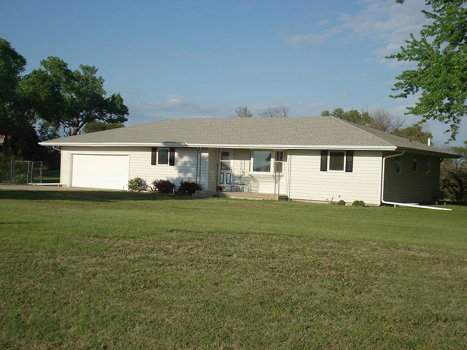 Property Description: This ranch style home features an open floor plan living room, dining room, and kitchen, three bedrooms, laundry room, a full bath and a half bath on the main floor. Also has a two-car attached garage. The full finished basement has two bedrooms, an office, and a full bathroom. The back yard has a deck on the back of the house, firepit, dog pens, and has a 40' x 72' metal building. This property has natural gas and rural water with a well. Features: This beautiful home sits on 4.5 acres outside of Beloit! Has main floor laundry. There is an egress window in the basement. There are several fruit trees on the property and a 4/10 of a mile walking trail. Spacious move in ready home! Items staying: Stove, refrigerator, microwave and dishwasher.Beloit is located in North Central Kansas. Entertainment in the area includes Waconda Lake 10 minutes west of the property, the NCK Wellness Center with olympic sized swimming pool, movie theater, and municipal park with pool are located within the city limits of Beloit.