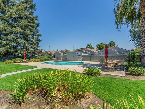 Immaculate, desirable, affordable move in ready very spacious 2 bedroom 2 bath home with very large finished atrium that could lend itself to extra living space to fit the new owner's lifestyle. Enjoy the great kitchen with granite counter tops, gas range, double/convection ovens, trash compactor, refinished cabinets, huge pantry, and a large eating area. The excellent floorplan includes a living room with vaulted ceilings , a natural gas fireplace, a dry bar, and a dining room area. The bedrooms are very generous in size, and the master bedroom has its own private patio. There are many LED lights throughout for energy efficiency plus triple pane windows with solar screens. Loads of storage on the interior in addition to an abundance of fabulous builtin cabinets in the over sized garage. This home is conveniently located on a desirable interior lot that is close to guest parking, pool etc.and great Clovis schools.
