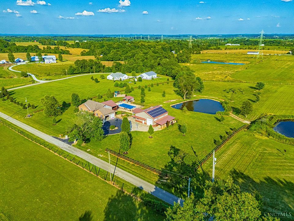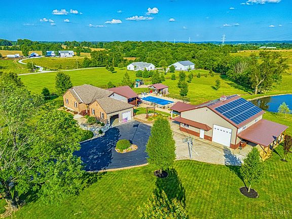 Gorgeous 4br, 3.5-bath home situated on 5 beautiful country acres in a prime location!This property has it allstarting w/ a spacious kitchen featuring wood cabinetry & hardwood flooring,plus a separate dining area perfect for family gatherings. The living room offers a vaulted ceiling for an open, airy feel, while the full finished basement includes a gas fireplace,sauna,full bath,BR, office, & entertainment room!Step outside to enjoy breathtaking views of your private pond from the covered back deck overlooking a 40x20 heated inground pool,hot tub,& pool house. A 40x40 pole barn offers a 15x15 office & half bath,along w/ an attached 14x60 lean-to & covered carportperfect for entertaining or working from home. The home also features an underground dog fence,kennel, beautifully landscaped yard,concrete sidewalks, playset, & composite decking. A fruit orchard & windmill that aerates the pond add even more charm to the outdoor space.An oversized 2-car garage.Solar & Generac generator
