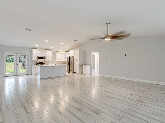 $10,000 towards Buyers Prepaids and closing cost! Discover your dream home! This stunning 3-bed, 2-bath concrete block home on a .24-acre lot with a tranquil canal backdrop offers luxury and functionality. The split floor plan ensures privacy, while the open-concept living area connects seamlessly to the kitchen, featuring tons of counter space, stainless steel appliances, and a breakfast bar island. French doors open to the porch, perfect for relaxing outdoors. The master suite boasts two walk-in closets, a double vanity, a freestanding tub, and a separate shower. Impact windows provide security and energy efficiency, and the home is pre-wired for a generator. A dedicated laundry room and charming front porch add to its appeal.