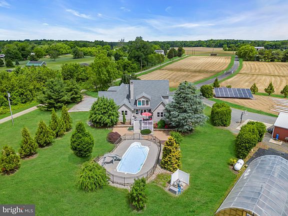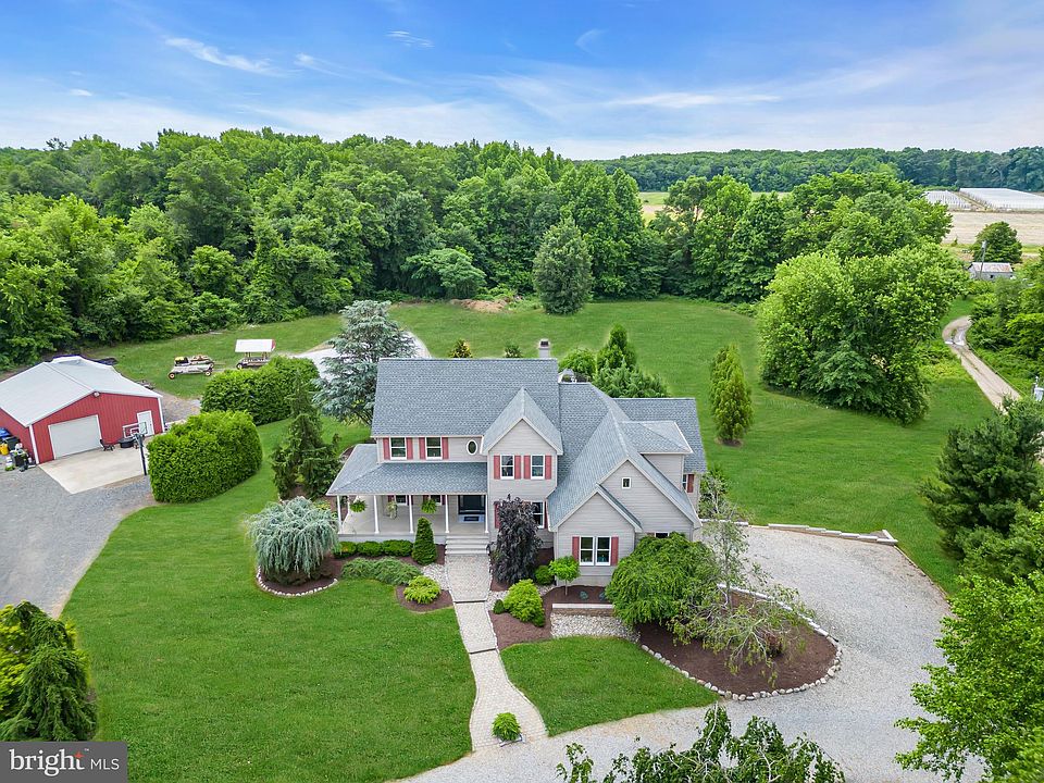 Truly spectacular & scenic luxury acreage property on 9.5 ACRES of tranquil land in desirable northern Burlington County! This charming property is set amongst the prime countryside of rural Springfield Township. Your new lifestyle awaits at the grand, custom 4 bedroom, 3.5 bath 3300+ square foot home with modern farmhouse style! The cozy feel is evoked from the first step into the inviting floor plan which embraces fresh design elements & fine craftsmanship. As you enter from the nostalgic rocking chair front porch, a bright formal dining room & formal office/sitting room accented with French doors provide a warm welcome. Imagine your own custom gourmet kitchen featuring fine appliances, center island, built-in custom cabinet, walk-in pantry w/ barn door accent & spacious eat-in dining area...a chef's culinary delight! The adjacent family room w/ floor to ceiling stone woodburning fireplace is the perfect escape for soothing relaxation with views of the outdoor deck & pool. In addition, the 1st floor also hosts a massive bedroom suite w/ soaring vaulted ceiling w/ sitting area w/ fireplace; walk-in closet & finely appointed full bath w/ jacuzzi tub & shower stall. A quaint laundry room & powder room complete the main floor & are adjacent to access to the attached 2 car garage. On the 2nd floor, the additional bright, airy bedroom suite features a walk-in closet & en suite full bath. The upper level also encompasses 2 additional oversize bedrooms w/ generous closet space & a shared full bath. Ample storage space completes the second floor with bonus access to a walk-up third floor attic. Not to be missed is a sprawling full basement which can be used as a game room or hobby/workshop space. Outdoors, an expansive deck with sitting area overlooks the tranquil oasis of the INGROUND POOL area. The crystal blue pool is a true refreshing amenity for hot summer days on the farm! Agricultural enthusiasts & hobbyists will appreciate the facilities which include a metal BARN with large overhead bay door built on a concrete pad which includes a refrigerated cooler room; a multi purpose GREENHOUSE & irrigated planting area for heirloom vegetables or flowers w/ 250ft deep well. Tillable acreage is suitable for traditional cover crops such as corn, soybean, or hay! This functional property can facilitate various agricultural uses including equine & livestock, traditional crops, fruits & vegetables, exotic produce & horticulture! Flat acreage can easily be fenced to create grazing pasture for your horses & livestock! *BONUS* Solar grid (owned) for green energy! A peaceful retreat for those who seek pure enjoyment and tranquility of rural country living. Experience the surrounding acreage & incredible lifestyle of this luxury acreage property today!