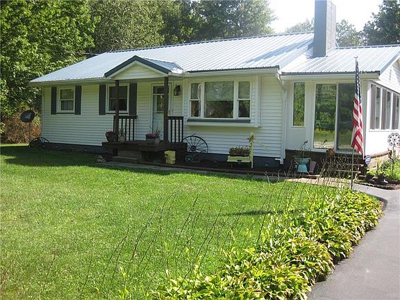 Pristine; vinyl sided ranch home situated on just over a half acre lot. Newer metal roof, windows, stainless steel appliances, heat pump and electric furnace. Updated flooring thru out the home. Sunroom is exceptionally bright with morning sun. This is a wonderful place to start your day. Kitchen offers lots of storage space and boasts attractive stainless steel appliances. The living room is large and spacious. Home is very well maintained and updated. Lot is fairly private; woods on one side and a small creek on the other.