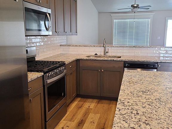 Single level townhouse with an open concept design. Large windows, vaulted ceiling. custom stained cabinets, stainless appliances, stone countertops, gas range and kitchen pantry. Partially covered patio, fully fenced landscaped backyard. HOA takes care of front and back landscape maintenance. Movado Subdivision has a pool, neighborhood parks and walking paths. Tenant pays all utilities but landscape taken care of by HOA. Every person 18 yrs and over must complete an application. The $17 fee is for credit/ background check and non refundable. No smoking/vaping in or on the property. We do not accept third party applications such as Zillow.