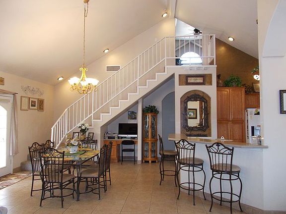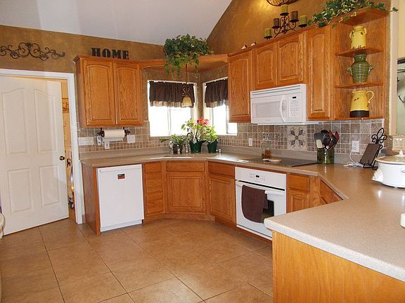 So much detail was put into this custom built home with amazing cathedral ceilings! Whether your entertaining or everyday living- the open floor plan will suit your needs. The kitchen boasts attractive oak cabinets & beautiful Corian counter tops which opens up to the dining area with additional kitchen island seating. Plenty of space for everyone with 5 full bedrooms, which one is currently being used as a den. In addition to a bonus loft that could be used as a hobby/game room. Large master bedroom with giant walk-in closet off of the spacious master bathroom, which has a corner garden tub and walk-in shower. Covered back patio with stamped concrete floor and built-in barbecue. Built-in desk and shelving throughout. Dog lovers will be impressed with this additional 10x10 separate building built especially so that the dog has its own house with heating and cooling which leads out to the fenced dog run. Plenty of parking with an oversized 2 car garage.