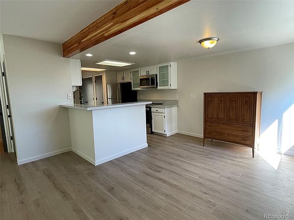 This clean and modern townhome boasts quiet living with newly renovated kitchen and LVP flooring throughout the main level. Use flex space off the kitchen for home office or game room. This townhome is in a great location, quick access to powerline trail for walking and biking throughout Aurora. The condo community feels quiet and secure with 2 car garage and penty of off street parking spaces right outside your front door. Fenced yard for your pets security.