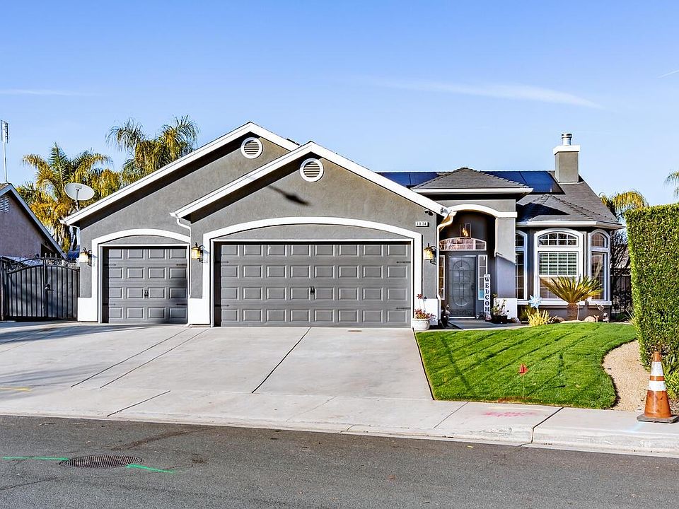 Stunning 4 bedroom 2 and a half bath home with 3 car garage on almost a quarter acre of land. Located in a highly desired and sought after neighborhood. Inside the home is beautiful- featuring high ceilings, beautifully crafted architectural accenting, custom lighting, upgraded flooring, soft paint, and an abundance of natural light that fills the space with a warm welcoming ambiance. The kitchen is stunning with selected granite countertops, stainless steel appliances, gas cooking, and plenty of cabinet space and storage for all your families needs. The kitchen also boasts a breakfast bar overseeing the living room area. The large owners suite has vaulted ceilings and the bathroom features a large standing shower with oversized oval soaking tub, and two matching sinks. Just off the owners suite is also direct access to the backyard. This incredible backyard has upgraded concrete in multiple spaces along with a beautiful in-ground private pool.