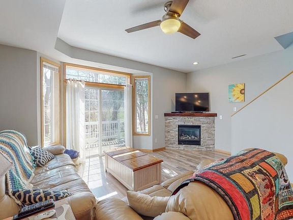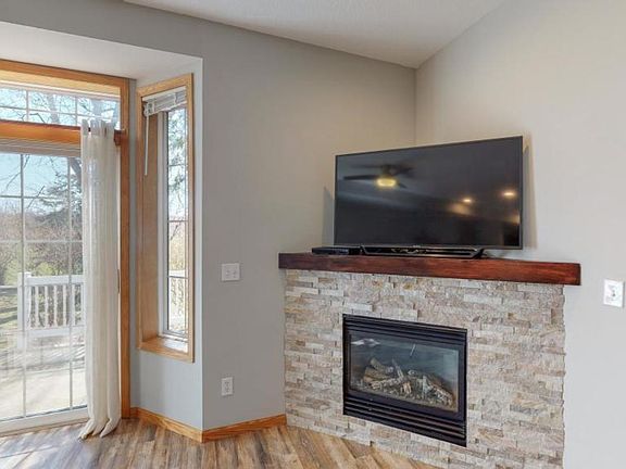 Feels like new with this updated townhome. Granite countertops. tile backsplash, stainless steel appliances, stone fireplace and newer flooring on the main level. Private patio that backs up to woods/park and both bedrooms are good size.