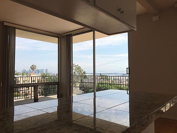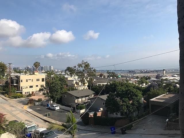 2 bedroom 1 bathroom/ balcony / views of downtown and airport/ laundry on site coin-op/ dishwasher,stove/oven, and refrigerator/ hardwood floors/ granite counter tops/ no a/c/ 3 rd floor, 2 flights of stairs/ 1 tandem parking off street/ NO Pets! Available Now! Landlord pays for Water and Trash. The tenant is responsible to have renter's insurance, good credit, and pays for SDG&E. No Pets! No Smoking! 3rd floor No elevator!