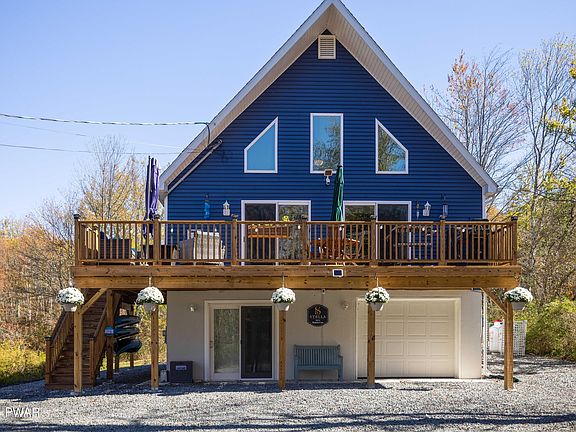 The perfect location! Located in The Hideout, a four-season amenity filled community in The Northern Poconos, just two hours from the NY, NJ and Philadelphia Areas. Discover a bright, contemporary residence offering a thoughtfully designed open floor plan, ideal for daily living and entertaining. Built for modern life, this home features a seamless flow between the living, dining, and kitchen areas, with abundant natural light and smart design details throughout. This 4 bedroom, 3 bathroom home offers plenty of room for guests to enjoy all four seasons the community has to offer. Enjoy the hot tub after a day of skiing at the community ski hill or a cocktail on the large deck after a day of golf. The large finished basement is perfect for entertaining or a great space for kids. The driveway has plenty of parking space, and the spacious open backyard is perfect for small children and ideal for outdoor activities. If you are looking for a freshly designed home in a community with loads of amenities and a seasonal view of Windemere Pond across the street, then this is exactly what you are looking for.
