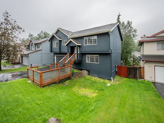 You will love this 4 Bedroom, 2 Bath home in a desired Eagle River Neighborhood! Plenty of sun and beautiful mountain views of Highland Hill. Open Living room with lots of space and vaulted ceilings. Cozy up to the fireplace on cold winter nights or enjoy BBQing on the back deck off the living room during the summer months. All appliances stay; washer/dryer, fridge, stove, etc.Use the downstairs bedroom as a family room which has direct access to the back yard. Located in a quiet cul-da-sac only minutes away from schools, restaurants and JBER. Gorgeous front deck with space for flowers. Furniture available for sale as well. Inquire regarding prices.