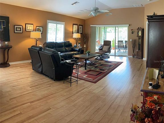 Beautiful Home on End Lot with Trees and Foliage - Total Privacy! Finished Walkway to Screened Entry; Large Welcoming Foyer; Gourmet Kitchen with Granite, Stainless Steel, Abundant Cabinets and Counters; Breakfast Nook with Bay Window; Living & Dining Room (Great Room); Spacious Master Suite with Adjoining Master Bath w/Dual Sinks/Garden Tub/Walk-in Shower/Private Commode; Room-size Walk-in Closet; Guest Bedroom and 2nd Full Bath; 3rd Bedroom/Den/Office with Pocket Door; Extended Covered Screened Lanai with view to Florida Natural Habitat; Laundry Room with Finished Laundry Tub and Extra Cabinets and Attached 2 Car Garage with Outside Entry Pad. Features Vaulted Ceilings - Hardwood & Tile Flooring - New Carpet in 2nd Bedroom - Plantation Shutters Throughout - Ceiling Fans. Located in "Maintained" Village and Active Community with Amenities and Activities for ALL Interests which are too many to list. Come see for yourself and begin living the Good Life! i