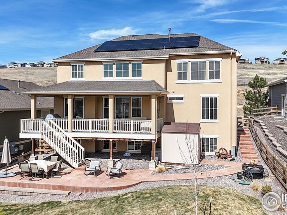 Pre-inspected and very clean! A corporate relocation prompts this sale and an amazing opportunity for you. As you drive through the neighborhood admiring the vast open space and grand Mountain views, you arrive to this listing and see open space directly across the street, and this massive two story home in Leyden Rock. Upon entry, you'll enjoy the tasteful upgrades and a formal dining area on your right, which leads to the butler pantry and moves through to the kitchen which features high end finishes and newer upgraded stainless steel appliances. The spacious living area features a soaring high ceiling that lends even more to the open feel of this floor plan. The 2nd story deck off of the kitchen offers breathtaking views of the Mountains to the West. The large yard, complete with a storage shed, features a stamped and stained concrete patio with the option of exterior storage under the deck. Upstairs, you can wake up to Mountain views from the primary bedroom! Luxurious primary bath. Large windows throughout the living area allow for an abundance of natural light, with more mountain views from the 2nd story hall. Full finished basement with a high-end wet bar! Owners have made great investments info the home, with features including: upgraded smart light bulbs throughout, electronic door lock to integrate with Google, 220V electric in the garage to charge EV's, and much, much more!