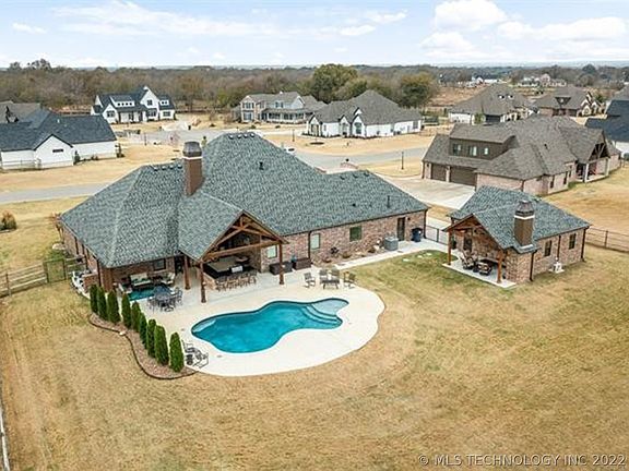 Immaculate custom home with all the amenities in desirable stone Canyon . Exquisite detail inside and outdoor living area abundance of beautiful wood stone, granite in the kitchen baths and laundry room. 2 outdoor living patios , heated swimming pool outdoor kitchen with smoker grill and more ! gourmet kitchen, jenn air appliances extra storage galore. Neutral tones Bring your color pallet of choice. Main bedroom has beautiful wood ceiling, stone fireplace for intimate ambience. Large tiled showers and beautiful hardware! Main Bath has separate sinks, Rain shower with gorgeous tile . Walk in closet perfect for the organizer sits between laundry room and bath. Extra wide drive 4 car cap , detached with Mini split, epoxy floors in detached, custom cabinets and 3rd garage offers storm shelter. Whole home generator! outside patios with woodburning fireplace. Perfect for family gatherings and outdoor fun. Too much to list - amenities list in MLS