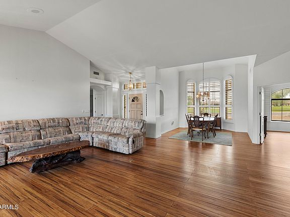 Beautiful Alexander Home w/ high vaulted ceilings, spacious floor plan, a large separate living room & formal dining. The home has 4 bedrooms, out of which two would be perfect for home office use. Split floor plan allows for a lot of privacy for you and your guests. The kitchen opens up to the great room w/ cozy fireplace. Plantation Shutters & Bamboo Wood flooring throughout! No need to replace old floors. The home has a large Primary bedroom w/ big walk-in closet. Step out on either the front or back patio and enjoy stunning golf & mountain views. The home is surrounded by the Rio Verde golf course on both sides. The big backyard is fully fenced with landscaping that is easy to maintain . Ideal for your four-legged friends and large enough to add a pool if desired. Spacious 2 car ... garage with additional golf cart bay. Enjoy the Rio Verde lifestyle, an active 55+ community offering golf, pickle ball, tennis, bocce ball, swimming, walking & biking trails, fitness & mesmerizing mountain views throughout the community.