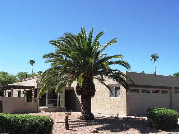 Professionally remodeled end unit townhome features an open floor plan, views, large picture windows and custom baths. All the original has been replaced with new: windows, doors, flooring, fixtures, etc. The kitchen has been finished with custom cabinets, granite counters, new stainless appliances and accent lighting. One level with no interior steps. Convenient open floor plan includes a separate laundry room with storage. The two car garage has an adjoining golf cart garage. Patios, privacy and all tile flooring make this a special find in Rio Verde.