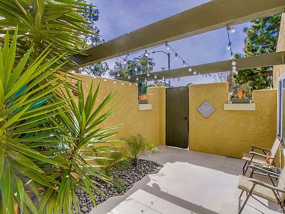 IDEALLY LOCATED END UNIT with AMAZING MOUNTAIN AND CITY LIGHTS VIEWS in the HIGHLY DESIRABLE Sea Breeze Village Community. Well-designed open concept floor plan, upgraded kitchen & baths, a highly prized main level bedroom suite, private front courtyard, and an expansive back patio with gorgeous views! Through the charming gated front courtyard you are welcomed into the home where you will be impressed with the soaring vaulted ceilings and the modern aesthetics throughout the light and bright interior. Fine features include an eye-catching modern fireplace, new interior paint, new carpet, a hip spiral staircase, built in work station, plantation shutters, dual pane soundproof windows, mirrored closet doors, AC, and an indoor laundry area. The Kitchen is a work of art with beautiful cabinetry, sleek granite countertops, modern cabinet pulls, glass door cupboards, tiled backsplash, recessed lighting, matching appliances, a highly prized breakfast bar, and direct access to the spacious back patio creating additional indoor-outdoor living space, perfect for relaxing and entertaining. The large upstairs loft bedroom is the perfect retreat with vaulted ceilings, two closets including a walk-in closet, upgraded vanity, and an oversized step in shower. 1 Car Garage with overhead storage, plus one parking space, & convenient street parking. Within walking distance of shopping, dining, & entertainment, and just minutes from Downtown Huntington Beach Nightlife and local beaches.