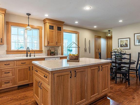 Stunning turn of the century home with high end finishes and a beautiful addition. This 3 bedroom, 2.5 bath home shows so well. First floor owner's suite with private bath and its own washer/dryer closet. Spacious kitchen with hard wood floors, island and breakfast bar overlooks the great room with wood burning fireplace. The main level office has a gas fireplace and built in shelving. The four seasons room overlooks the private backyard with fruit trees. Upstairs you'll find two more bedrooms and a full bath. 24'x50' pole barn has a concrete floor, electric, water and a half bath. This property could be bought with an additional 25 acres.