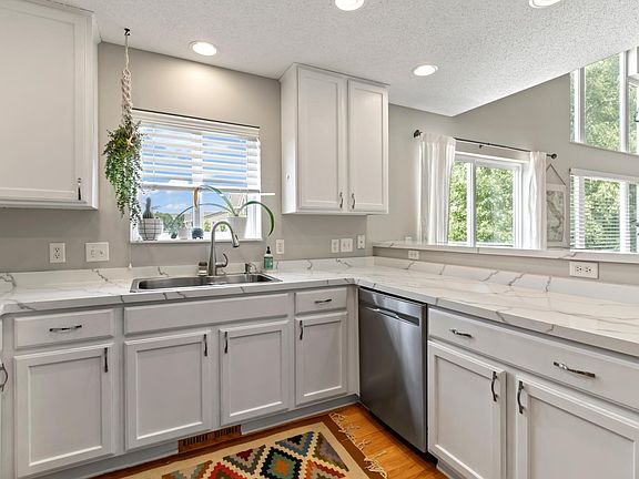 Wonderfully updated end unit town home, in a private Lakeville location, close to freeway access, and an abundance of shopping & restaurants. This end unit town home boast 3 bedrooms on one level, 4 bathrooms with private master bathroom, heated bathroom floor, walk in closet, white painted kitchen cabinets, 2 story volume ceiling with a beautiful wall of windows, wonderful abundance of natural light, 2 fireplaces, maintenance free deck over looking wetlands, barn door, walk out lower level.